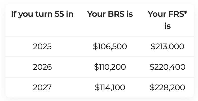 Every dollar above the FRS becomes withdrawable once you turn 55. Think of it as your money being held in a high-security vault, but once you prove you’ve got enough for retirement (the FRS), the vault opens up for the excess.
