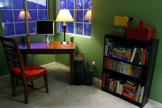 (This picture was taken after I tidied up the desk a little so I could put my laptop on the table. When I first took over, I didn’t even have a shred of empty desk space.)