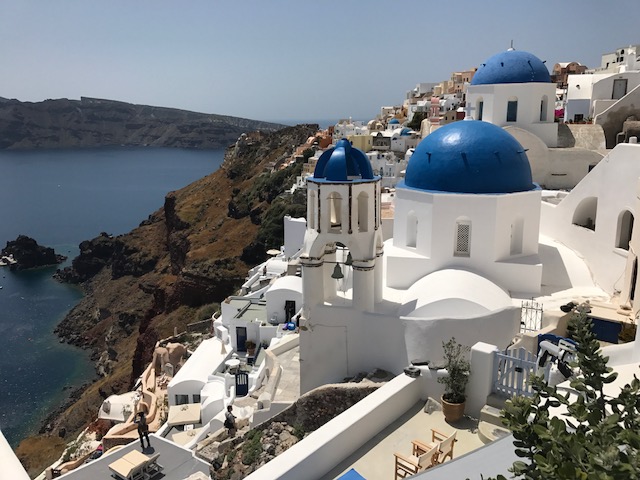 When my wife and I were honeymooning in Santorini, we knew that we had to take that picture of the famous 3 blue domes.