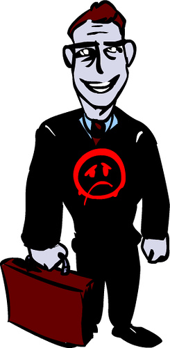 salesmanCompare our busker with another type of underpass denizen: The insurance salesman.