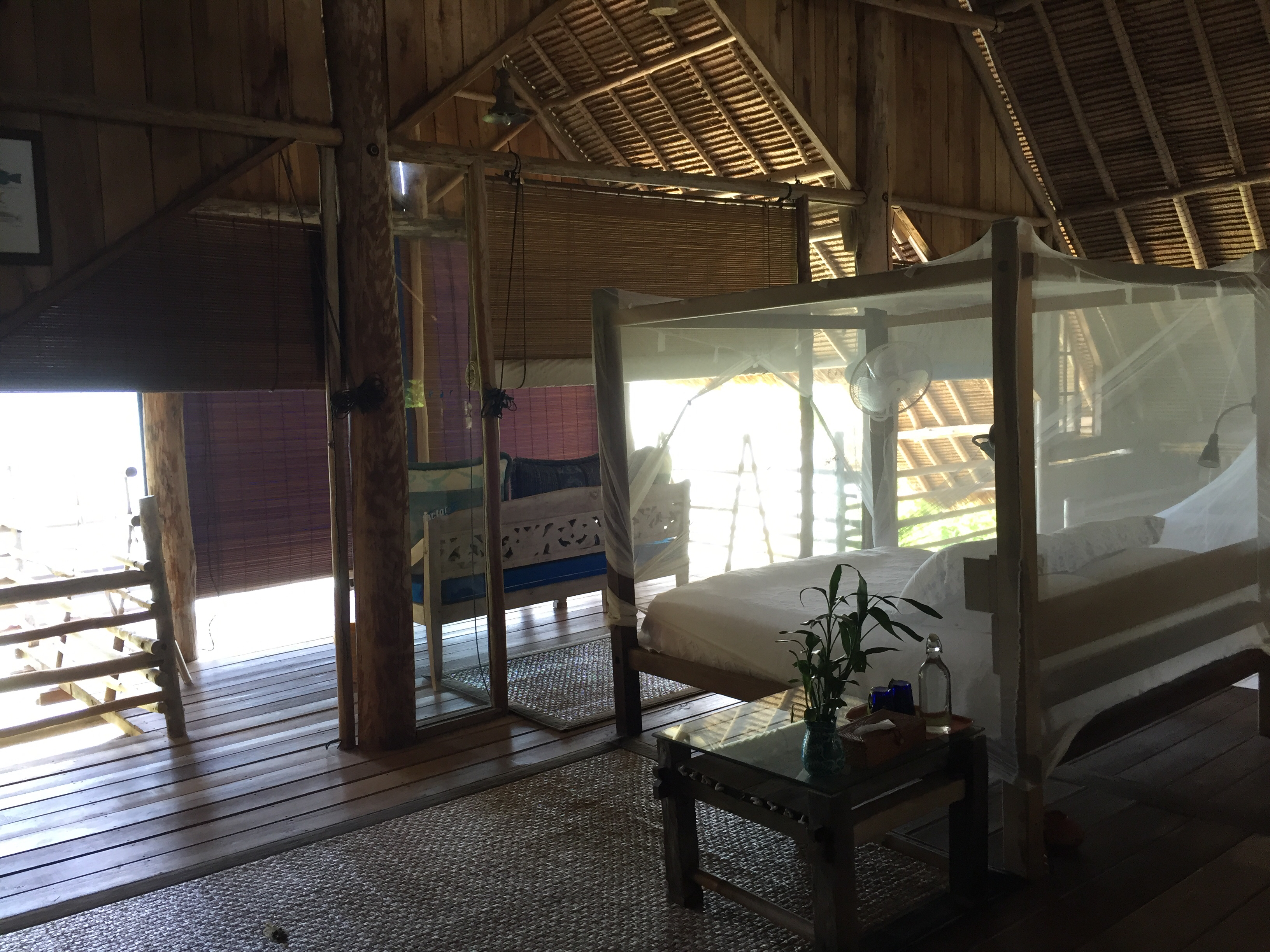 The rooms are called “palaces” and are kinda like palatial kampung huts. They’re not luxurious and there’s no air-conditioning, but they are clean and comfortable. Plenty of sofas and cushions to lounge around in. Having multiple fans in the room keeps you cool, and the free mosquito nets/repellent/mosquito coils help to keep insects away.