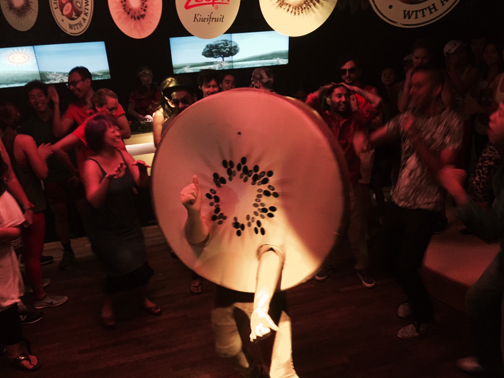 Inside, a DJ was spinning thumping music. The bar was serving up alcohol-free kiwi juice. Rows and rows of healthy breakfast foods were laid out, including granola cups, devilled eggs, mini-rolls and chai seeds. All kiwi-infused, because the party was sponsored by Zespri, the kiwi marketer. (Brilliant piece of marketing, in my opinion).