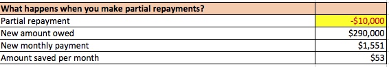 Now, let’s say that your boss was feeling especially generous this Chinese New Year, and decided to give you a $10,000 cash bonus. HUAT AHHHHHHH! Now let’s say that you used that $10,000 to make a partial repayment of your home loan, reducing your liability from $300,000 to $290,000.