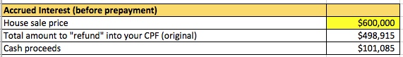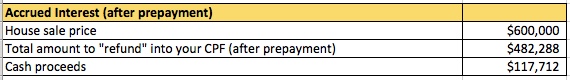 This isn’t as bad as it sounds, since you’re paying it back into your own CPF account. However it DOES mean that you will have less cash proceeds from the sale of your house.