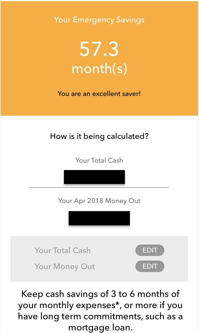 First, it takes the ACTUAL amount you spent (from your credit card and ATM transactions), and compares it against the amount of savings you have. That gives you an indication of how large your emergency fund is, from a “monthly expenses” perspective.